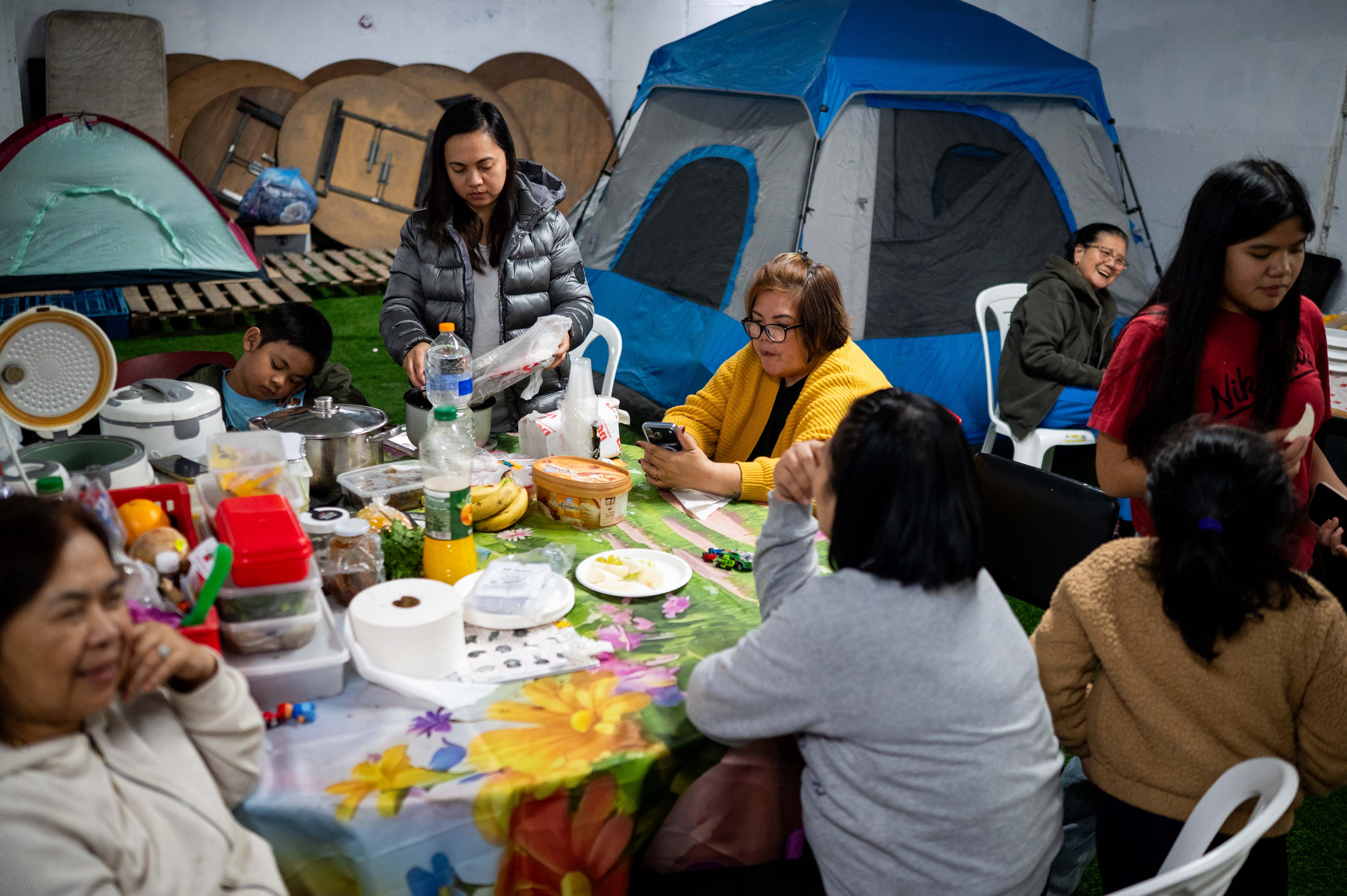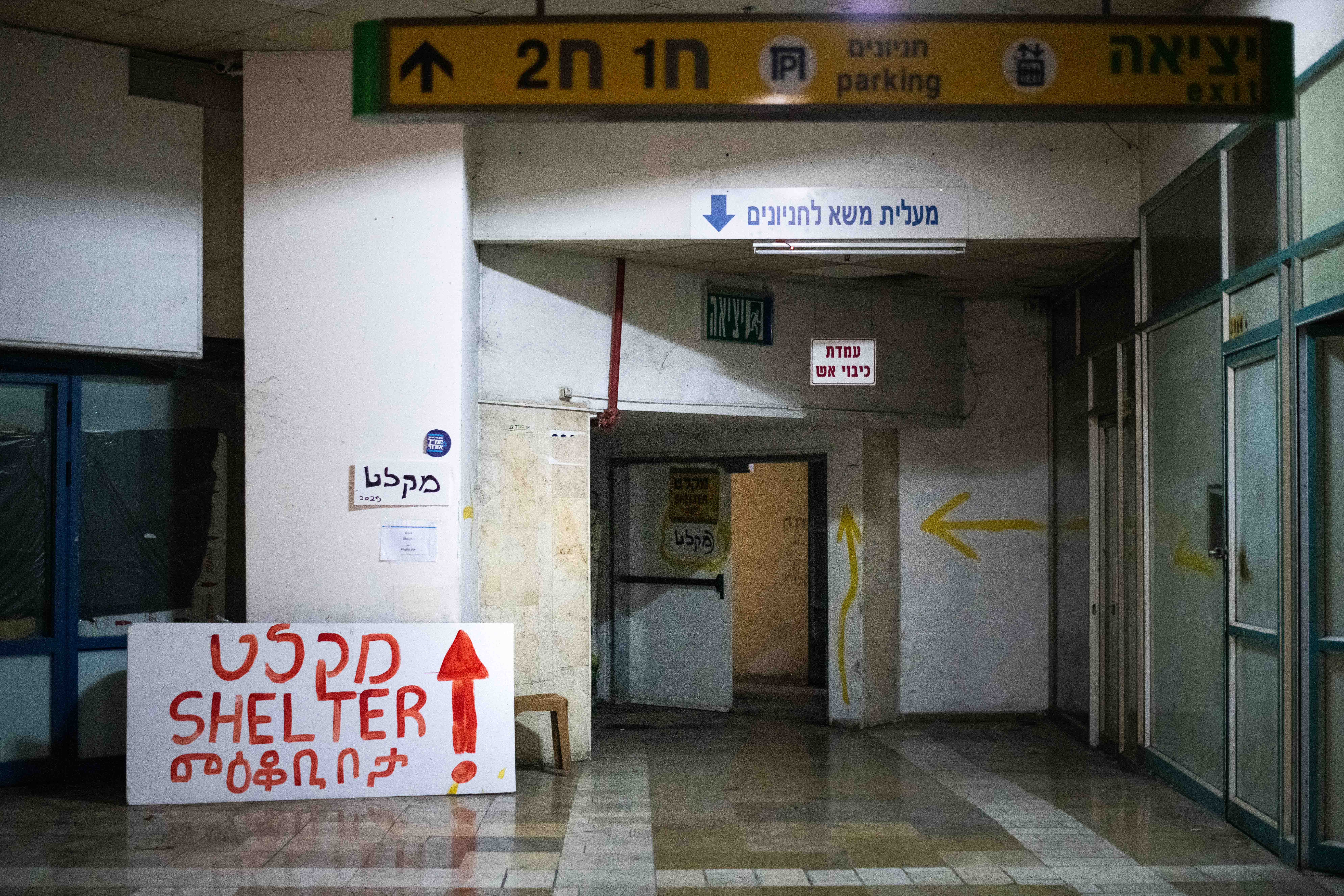 Photo essay on migrant workers, refugees, and undocumented migrants sheltering in the Central Bus Station bomb shelter in Tel Aviv during Iranian missile attacks. By Yahil Faraj, photos by Nicholas Pfosi.